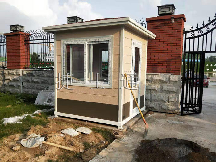 此款實拍保安亭產(chǎn)品介紹:金屬雕花板崗亭整體采用鍍鋅鋼管為龍骨外墻為金屬雕花板、金屬雕花板由表面材質(zhì)、芯材和里面材質(zhì)三部分構(gòu)成。其優(yōu)點有:可長久保持美觀、有較好的隔音性能和阻燃性能、保溫性能較強、健康安全無污染、可快速安裝等。金屬雕花板崗亭適用范圍: 適用于酒店、大廈、機關(guān)、小區(qū)保安、收費、停車場、物業(yè)、高速公路、港口等。咨詢電話:15822882616,公司網(wǎng)址:www.sqjskj.com