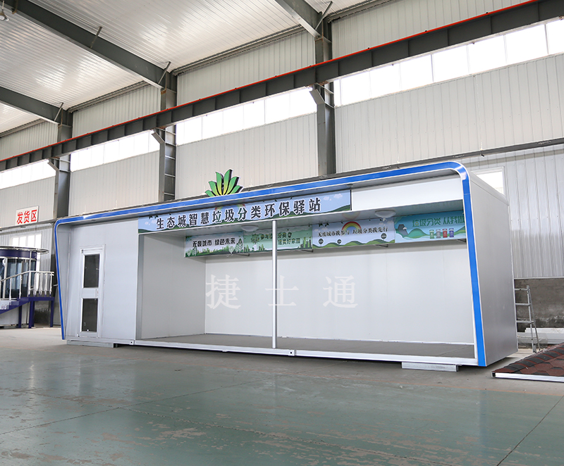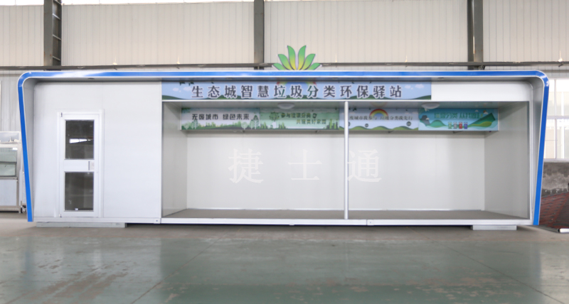 天津生態(tài)城垃圾分類驛站由捷士通崗?fù)S家設(shè)計(jì)生產(chǎn),已于六月底安裝完畢