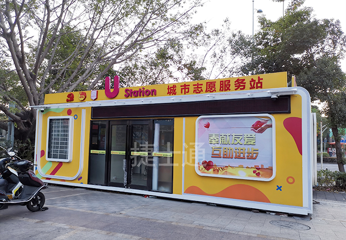 城市志愿者服務(wù)站根據(jù)街道實(shí)際情況需求定制了此款樣式,整體方鋼龍骨焊接而成,穩(wěn)固耐用,使用起來和正常房屋一樣,有防水防漏處理,無需擔(dān)心漏雨的情況。卸貨方便,將底部固定之后,接電即可使用,為城市文明建設(shè)提供了一個地標(biāo)性的建筑。