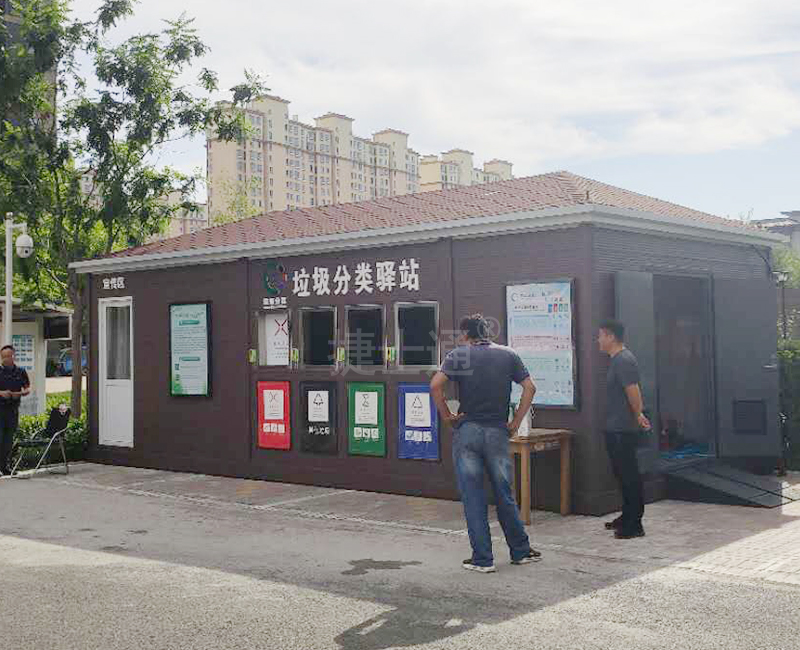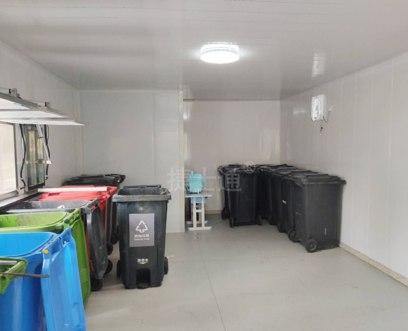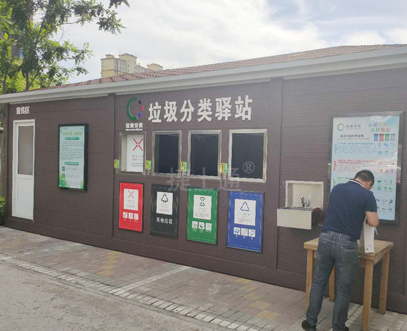 垃圾房分為兩部分:垃圾投放口、宣傳區(qū)(工作間)