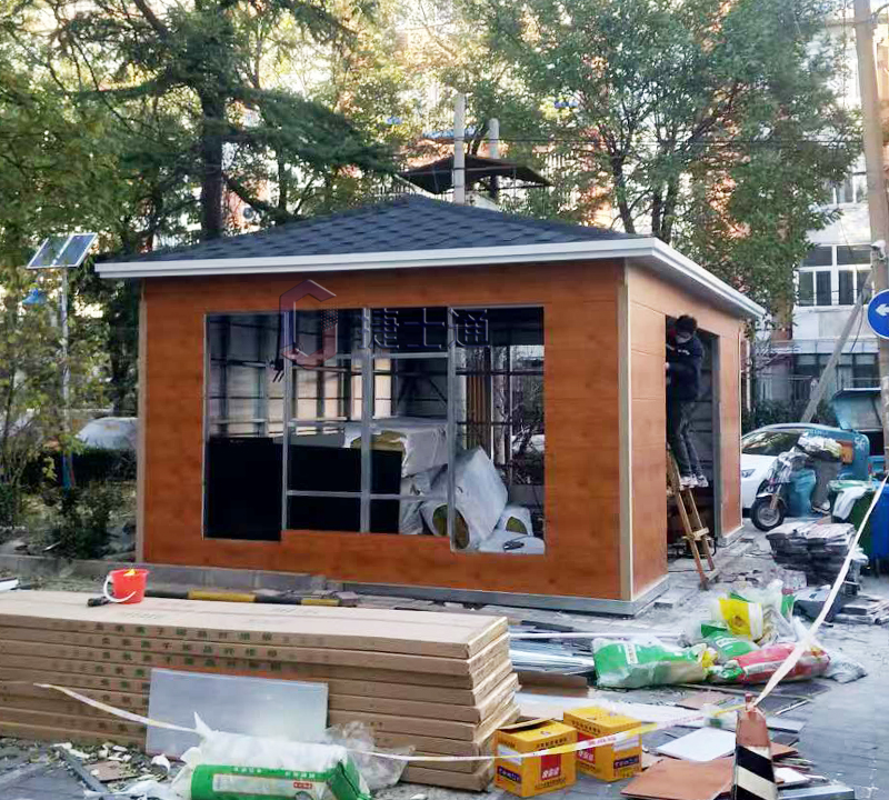 北京現(xiàn)場搭建垃圾房,因甘家口街道花園村社區(qū)的街道和出入口狹窄,車輛無法通行,整體房屋運輸不過去,因此社區(qū)決定采用現(xiàn)場搭建形式,雖然現(xiàn)場環(huán)境有些凌亂,但是我們的技術實力還是相當厲害的。房屋沒有采用垃圾分類投口,將垃圾分類桶全部放入室內(nèi),方便工人操作,旁邊還設有工人操作間,方便請假及休息。