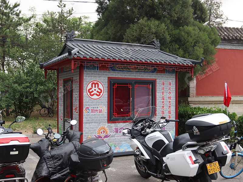 捷士通生產(chǎn)的仿古款式志愿者服務(wù)亭落地在海淀區(qū)