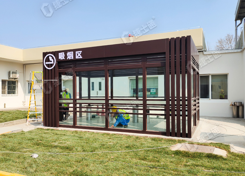 捷士通設(shè)計和生產(chǎn)的吸煙亭適用于工廠內(nèi)部,為員工提供一個方便的吸煙場所
