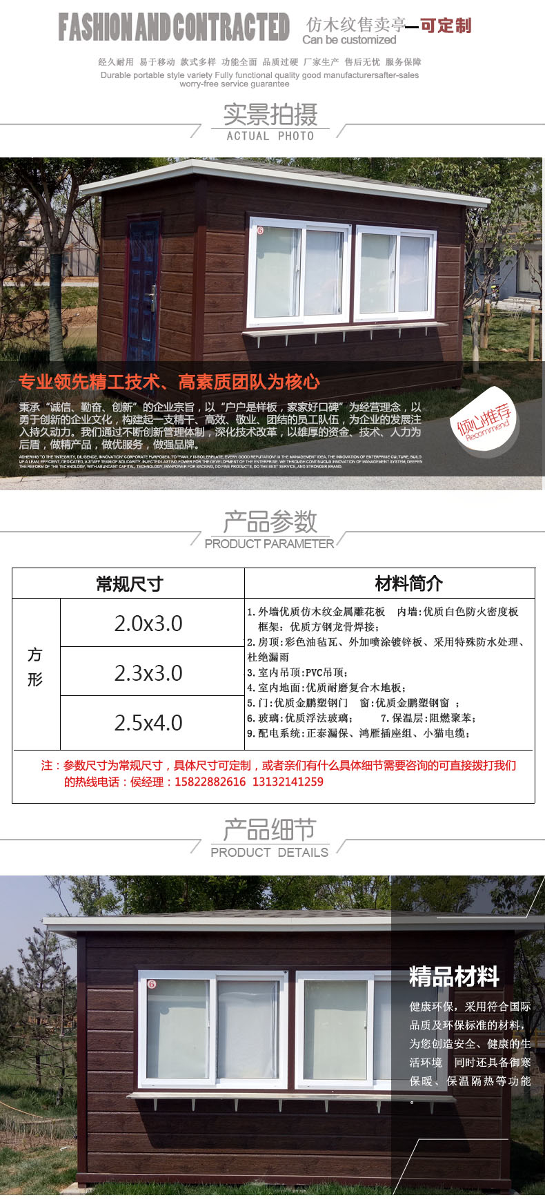 金屬雕花板崗亭售貨亭戶外售賣亭-捷士通崗亭廠家,此款商品可以作為售貨亭或者保安亭使用。