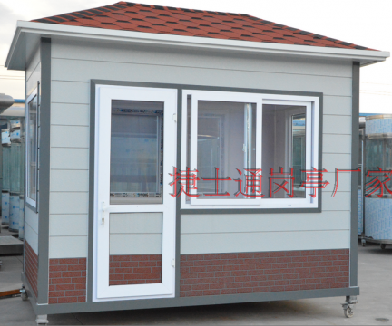 紅磚塊灰中溝紅色油氈瓦金屬雕花板保安崗?fù)?/h3>