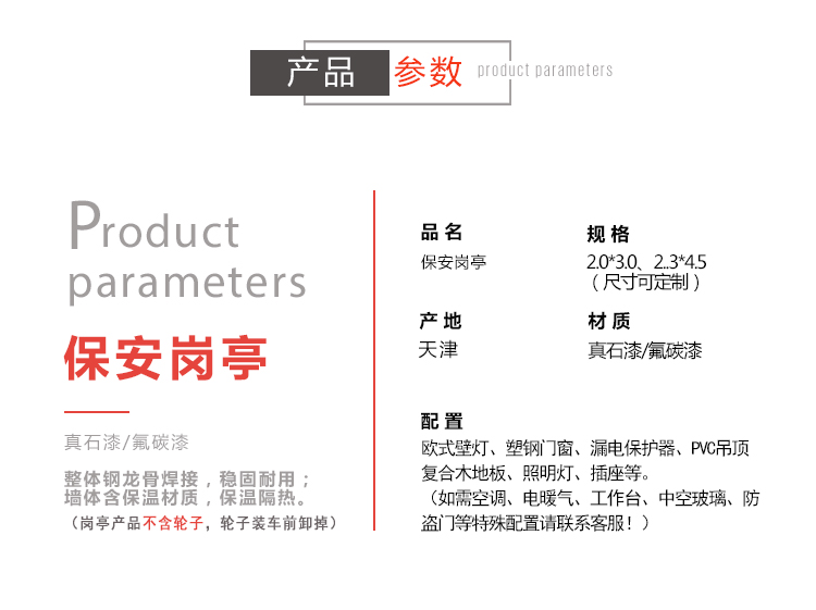 標(biāo)準(zhǔn)配置 :墻體含保溫材料,屋頂鍍鋅板靜電噴涂,PVC吊頂,地板可定做防滑鋁板/復(fù)合木地板,電箱、開關(guān)、插座、暗敷電線、照明燈、桌面、抽屜、鍵盤托、空調(diào)架等;可加配:空調(diào)等;咨詢電話:15822882616,公司網(wǎng)址:www.sqjskj.com