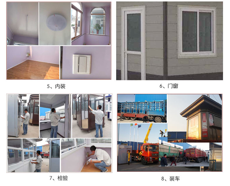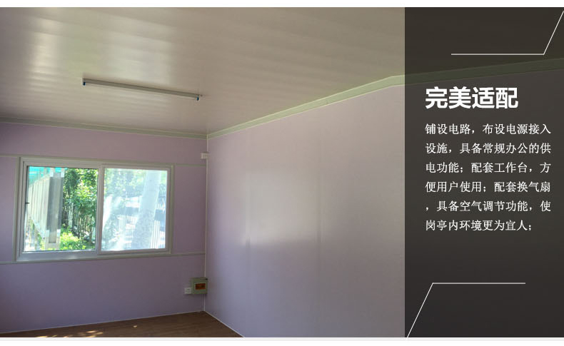 4.所有崗?fù)?nèi)部配置,門窗位置設(shè)計,電源插座、空調(diào)位置等,可按客戶實際情況設(shè)計加工定做。