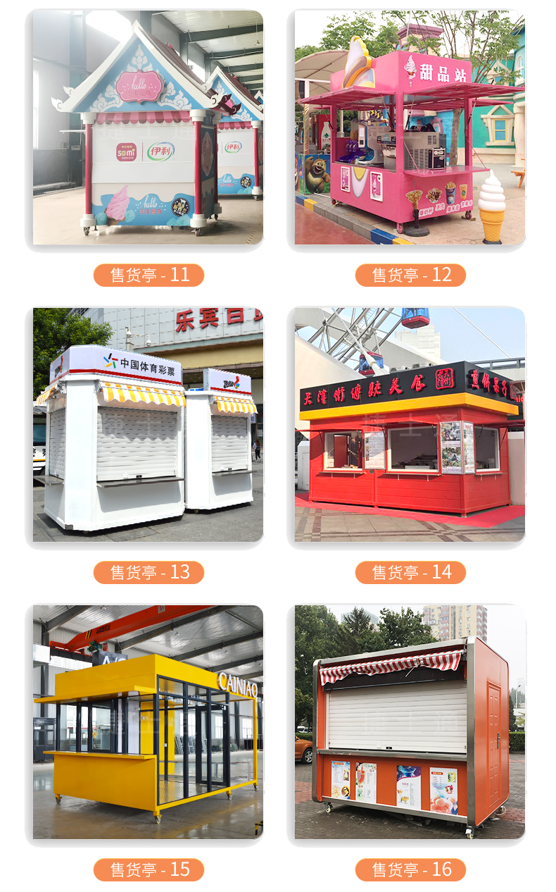 天津市捷士通科技有限公司,有專門的設計團隊,有大量的售貨亭案例,為景區(qū),公園,商業(yè)街專門打造的匹配場景的售貨亭,得到了各級領導和用戶的一直好評,下面展示一小部分案例,有需要的可以撥打電話:15822882616 ,公司網(wǎng)址:www.sqjskj.com