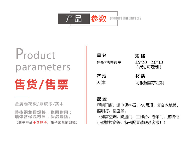 | 類型 | 售貨亭 | 顏色 | 可定做 | 運(yùn)輸方式 | 公路運(yùn)輸 | ||