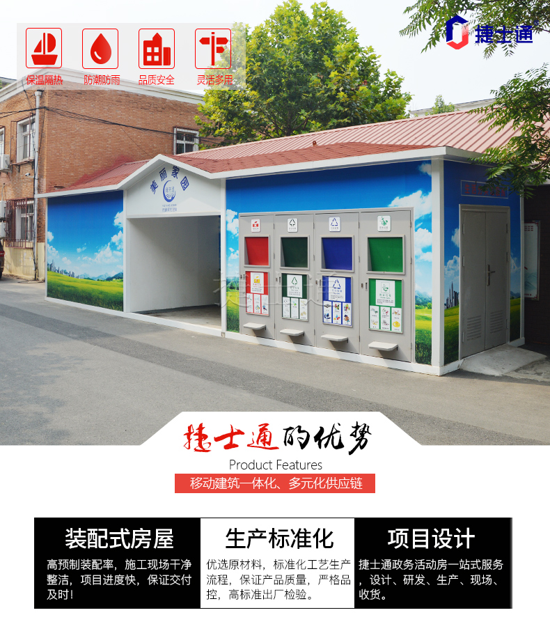 大型戶(hù)外垃圾房使用場(chǎng)景廣泛,可放置在小區(qū)、學(xué)校、廣場(chǎng)、商業(yè)街、單位等處