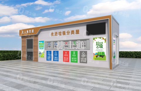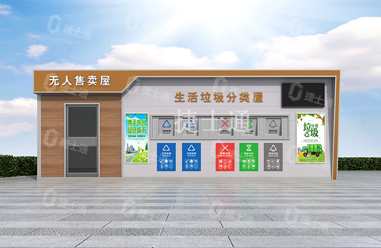 此款為房屋型垃圾分類房,是以房屋為承載體,內(nèi)部配以垃圾箱或者智能垃圾回收箱,形成步入式垃圾投放的形式,其產(chǎn)品優(yōu)勢(shì)為外觀靚麗,可融入周邊建筑群體,并可以為垃圾分類引導(dǎo)員提供休息執(zhí)勤的空間,房屋內(nèi)部設(shè)備配套齊全,可有效解決氣味污染、環(huán)境視覺(jué)污染等問(wèn)題;但是造價(jià)相對(duì)較高,基本以長(zhǎng)期固定的形式呈現(xiàn),為未來(lái)發(fā)展趨勢(shì)