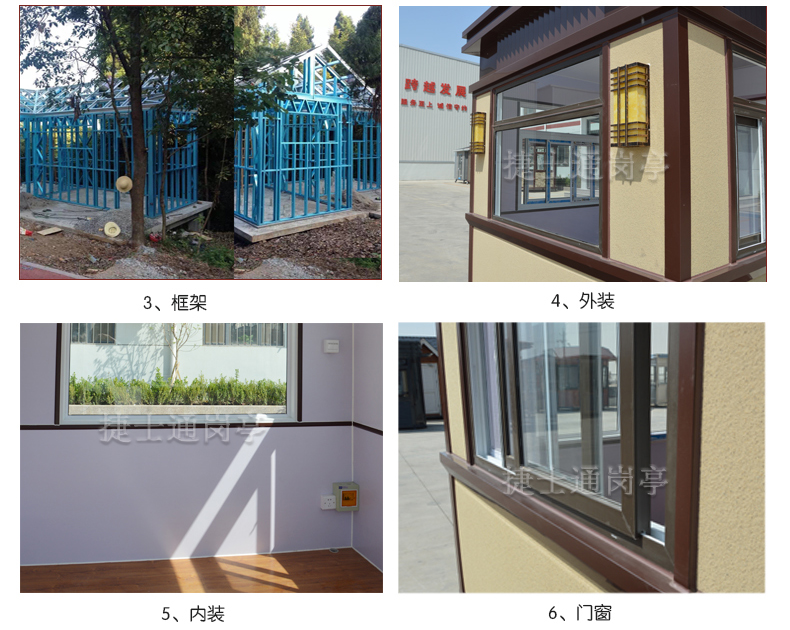 4.房頂:彩色油氈瓦、外加噴漆鍍鋅板、采用特殊防水處理、杜絕漏雨