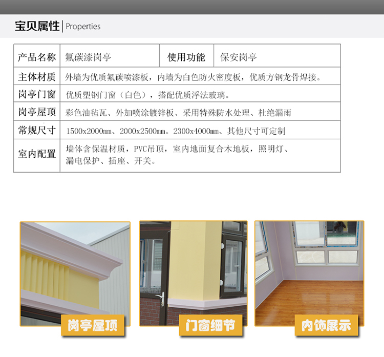 氟碳噴漆高端保安崗?fù)?,常?guī)尺寸,1.5*2米,2*2米,2*2.5米,2.3*2.3米,2.3*3米,2.3*4米等尺寸