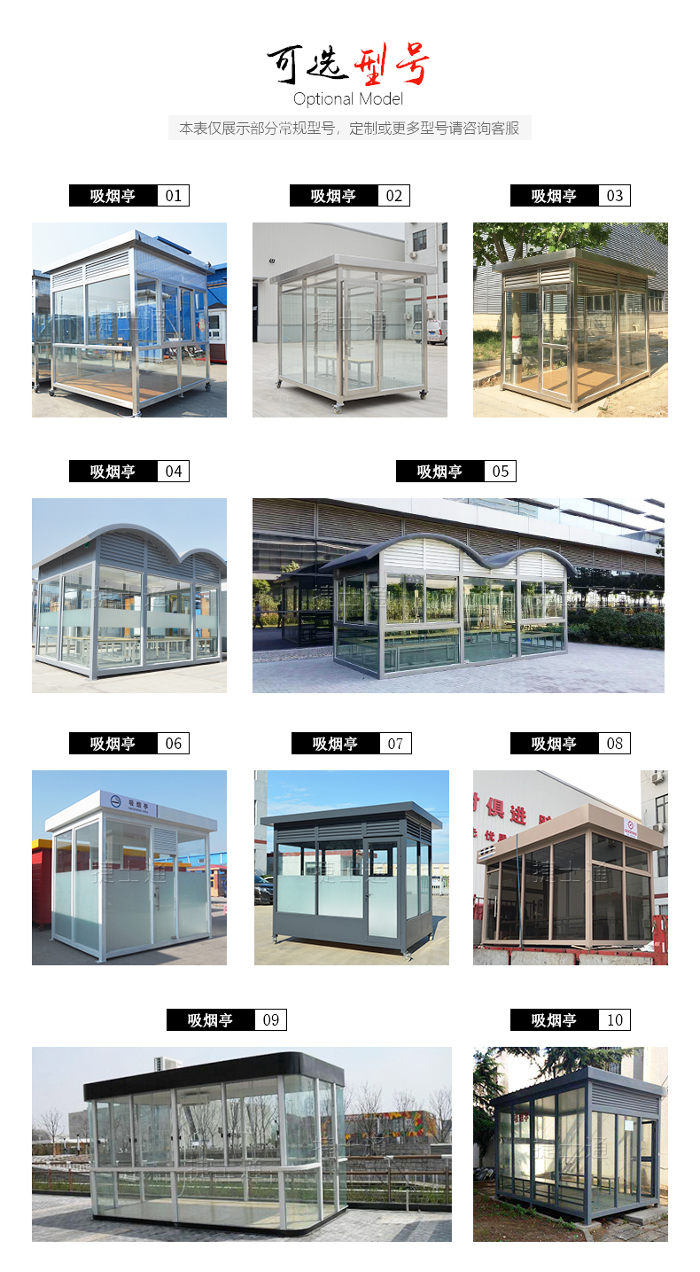 很多人都說,那吸煙亭多熱啊,在太陽下曬著,里面會不會很悶,會不會很曬,其實這些每個工廠的要求是不同的,有的工廠全天空調(diào)全開,排風系統(tǒng)全開,有的工廠是不安裝空調(diào),上班時間吸煙本身就是耽誤工作,在安裝個空調(diào)(有的工廠是不會這么做的),但是吸煙亭硬性是可以在頂部排風,吸煙亭內(nèi)部配置大煙垃圾桶,板凳,一般吸煙亭是在離廠區(qū)有點距離的安全地方,這樣做可以更好的保障工廠安全。