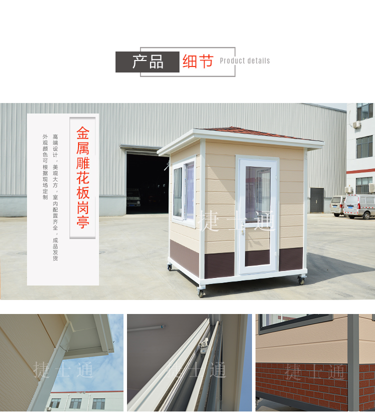 金屬雕花板崗亭是捷士通移動房屋廠家所使用的最常見材質(zhì)之一,但其他一些非金屬材料,像塑鋼窗、某些墻板及其中的保溫隔熱材料這類“配角”也是必不可少的!