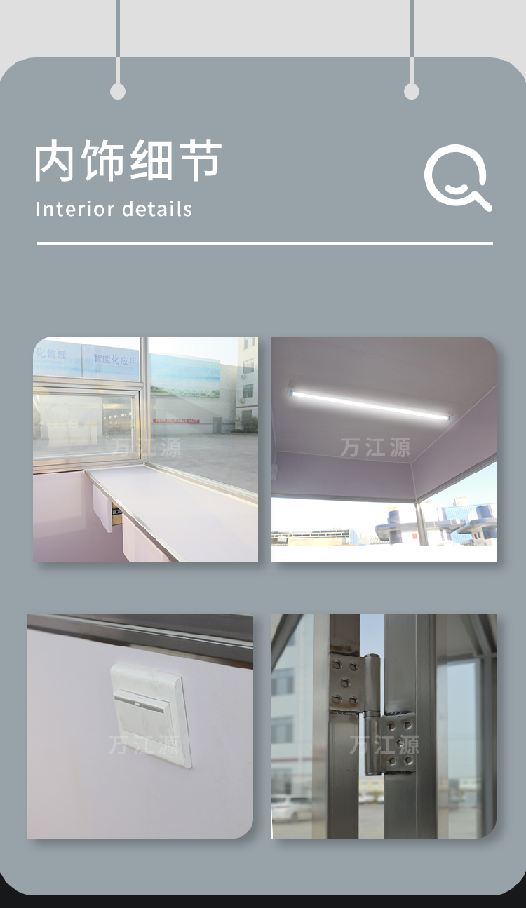 六、配置齊全:麻雀雖小,五臟俱全,室內(nèi)照明、工作臺(tái)、空調(diào)支架、插座均有設(shè)置