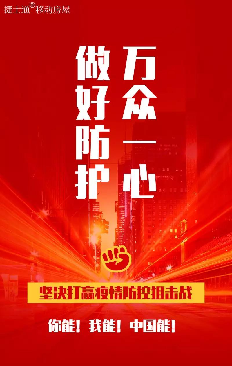 疫情發(fā)生開始,便牽動著全國人民的心,捷士通移動房屋全體員工更是一直密切關注著疫情的發(fā)展情況,且注意到各地對檢疫站的迫切需求,我們作為一家移動房屋生產(chǎn)企業(yè),雖不能如醫(yī)護工作者一般沖在第一線,但我們愿用自己的方式為打贏這場防疫狙擊戰(zhàn)獻出自己的一份力量!為疫情防控工作提供堅實的后盾!