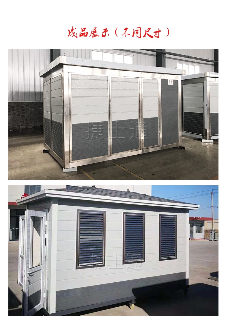 城市環(huán)衛(wèi)道路保潔工具用房、整個崗亭尺寸可以隨意定制,常規(guī)尺寸為2*3/2.3*4、占地面積約為6個平方,其他根據(jù)情況而定,尺寸可以改變,常規(guī)工具房崗亭寬為3米,因為運輸中限寬是3米,室內(nèi)空間比較大、方便環(huán)衛(wèi)工人在內(nèi)休息、還能存放一部分道路保潔工具、比如、垃圾桶、掃把、鉗子等、工具房頂部也有醒目的標識、它不但是能讓人們了解這個崗亭的用途、還能顯示安亭區(qū)對環(huán)境衛(wèi)生的重視!