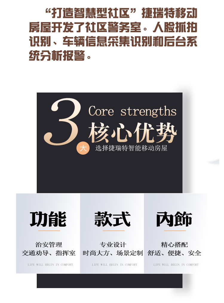 一間新建的新型智能警務室出現在天津捷士通廠家,,外墻標志著警察宗旨,格外的醒目。打造24小時公安智能警務室,按照“讓數據多跑路,讓群眾少跑腿”的建設理念,,使警務服務向社區(qū)有效延伸,拓展7×24小時社區(qū)警務室服務功能,建立的集警務室、服務站、實驗中心功能于一體的虛擬社區(qū)民警實驗中心暨智能社區(qū)警務室,努力實現將服務送到群眾身邊,把問題解決在家門口,讓智慧警務惠及千家萬戶。