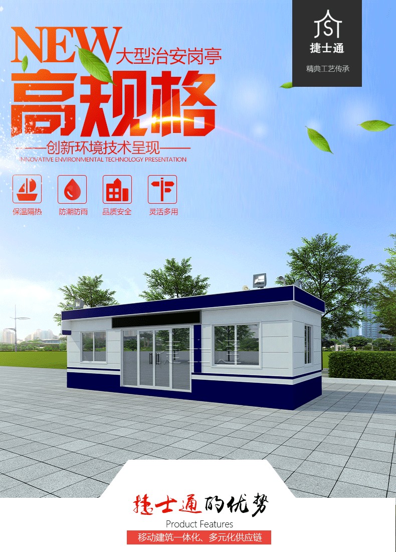 檢查站警務(wù)室整體雙龍骨焊接而成,堅(jiān)實(shí)耐用,廠家批量生產(chǎn)定制。