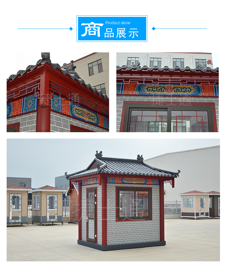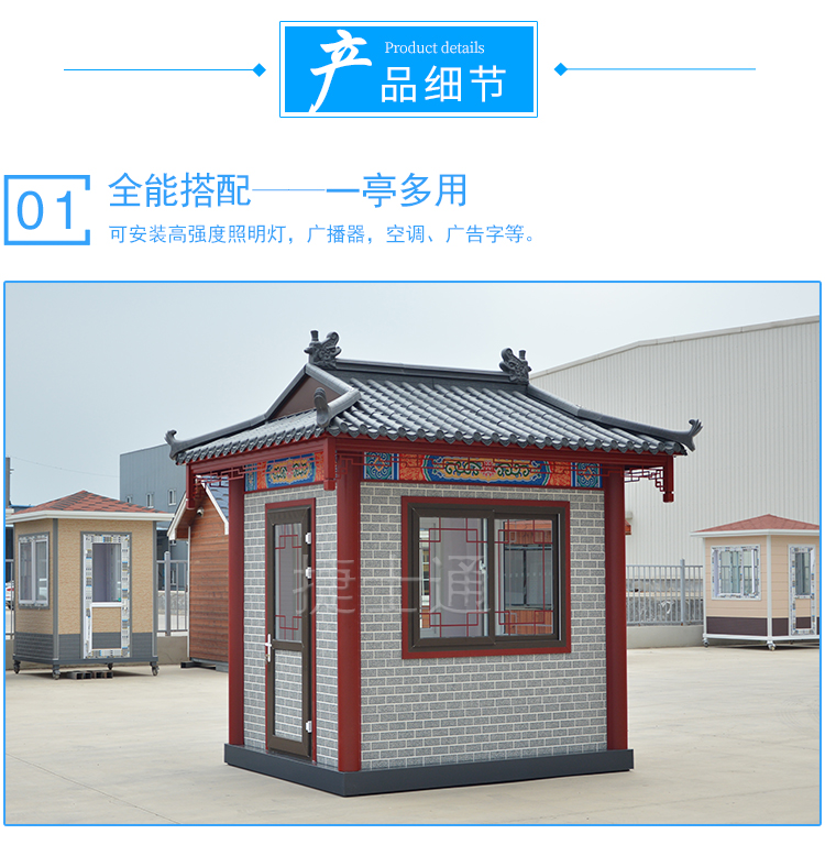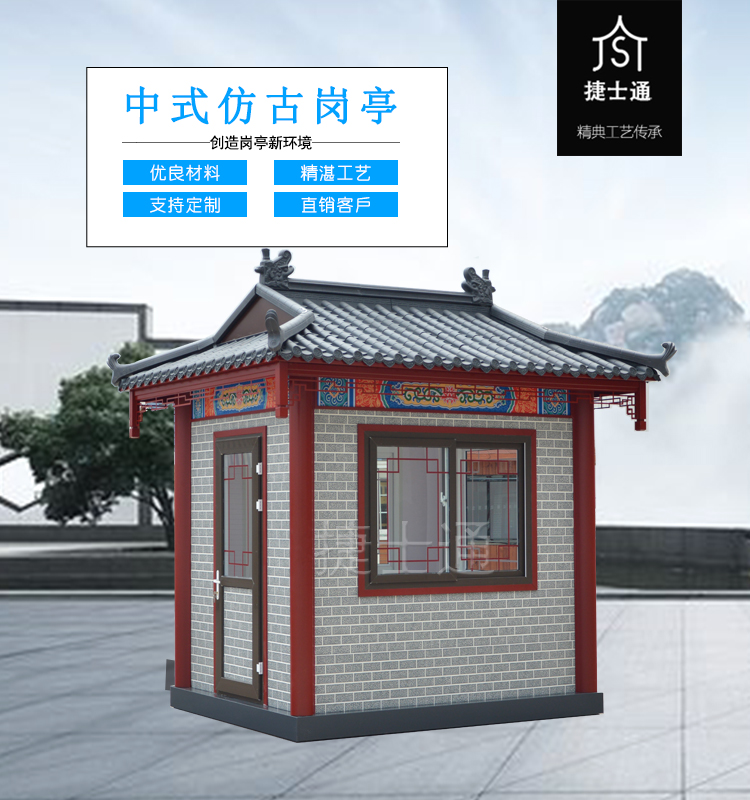 特有的造型,仿古的花紋,創(chuàng)意的窗飾,與古建筑恰到好處的融合,仿古的景區(qū)、仿古的公園、仿古的景點(diǎn),保安崗?fù)ぁ⑹燮蓖?、休息亭均可采用此類風(fēng)格,而且在設(shè)計(jì)的時(shí)候,尺寸均可定制?。。?!運(yùn)輸怎么解決?捷士通廠家和全國的物流均有合作,所以只要您在中國,均可運(yùn)輸?shù)剑。?br />